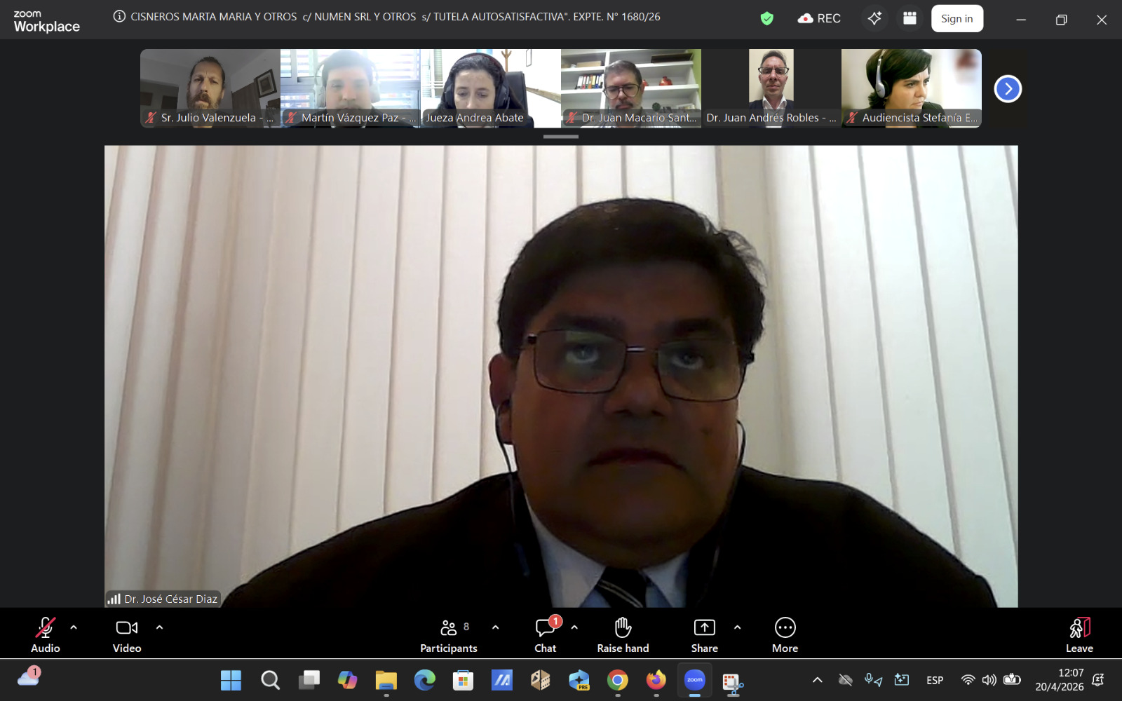 En el acto virtual se produjo la sorpresiva incorporación de José Díaz a la representación de las hijas de Cisneros. La magistrada expresó su extrañeza ante la falta de pedido formal previo de apersonamiento, lo que generó una demora hasta que el escrito llegó al juzgado por supuestos “problemas de conexión”. Una vez aceptada su participación, Díaz sostuvo que continuar con la audiencia tras el desistimiento era “una pérdida de tiempo”. La jueza lo contradijo con firmeza y le recordó que el acto se había convocado precisamente a pedido de la parte que él ahora representaba.